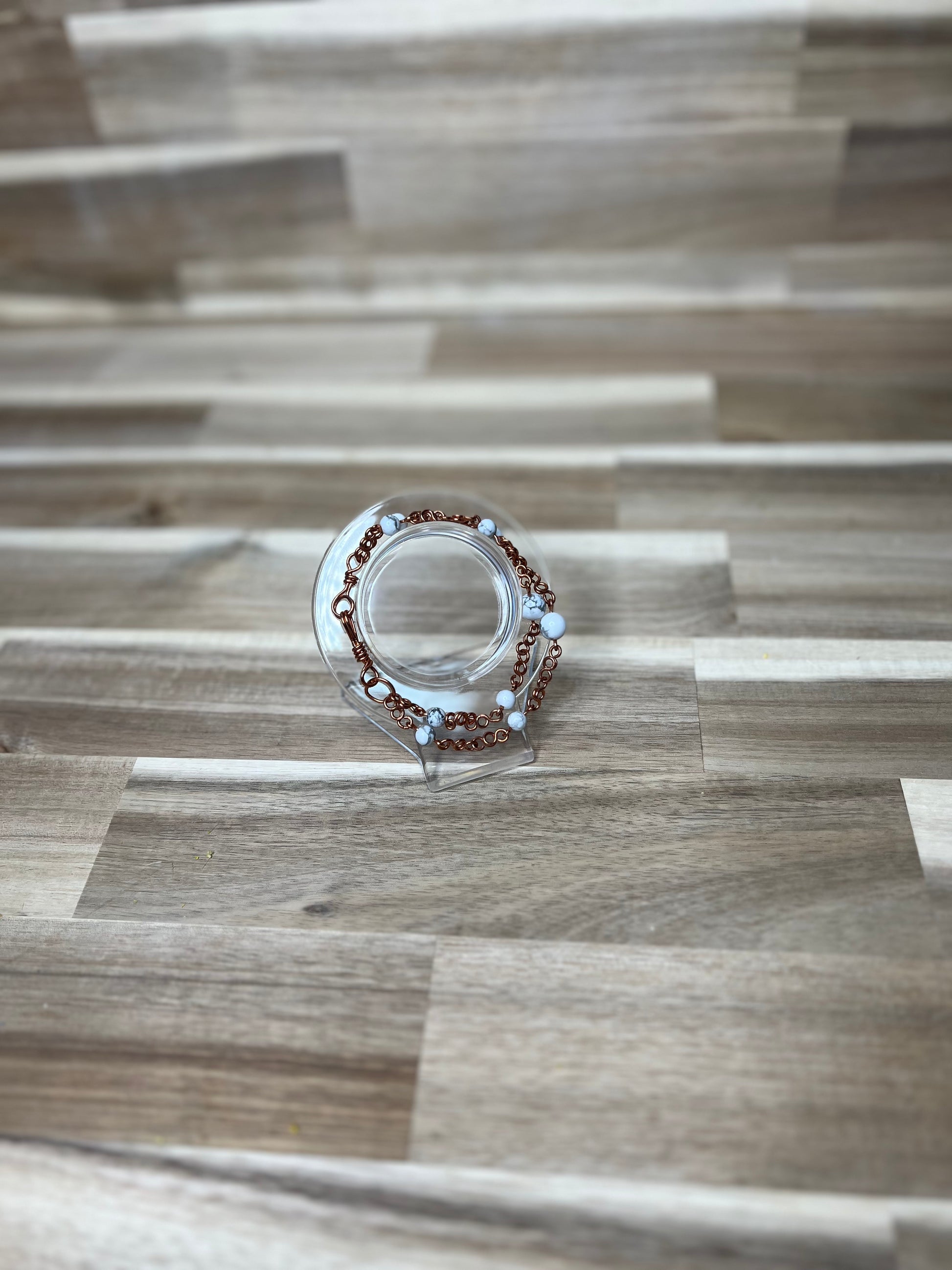 This Howlite and Copper Bracelet combines soothing howlite beads with sturdy copper wire to create a piece that supports your well-being and style. Designed to offer a gentle reminder of calm and balance, it’s a thoughtful accessory that complements your daily journey with strength and grace. Wear it as a symbol of steady support throughout your day.